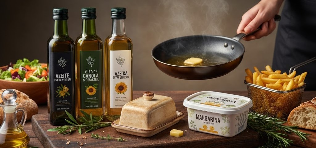 - Cozimento diário (Refogados): Opte por óleos de Canola, Girassol ou Azeite de Oliva Comum. Eles são versáteis, saudáveis e econômicos para o uso constante.